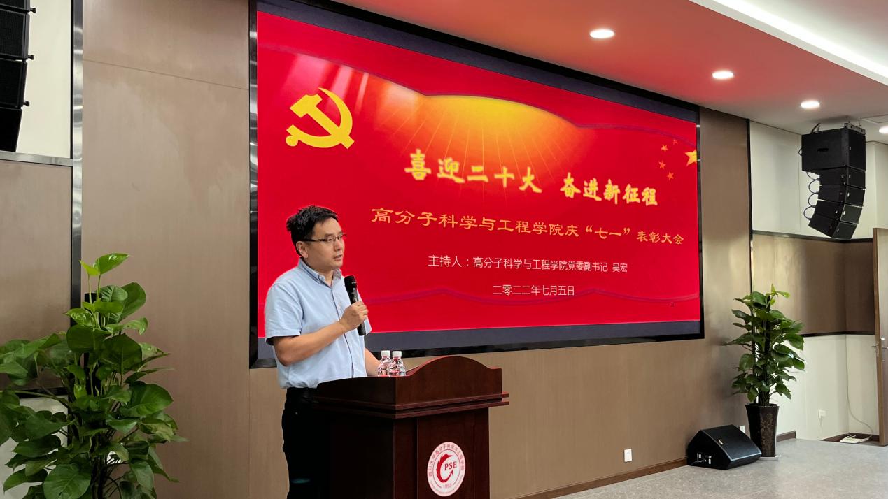大会在庄严的国歌声中拉开序幕。公司党委书记牟德富同志作大会发言,他代表公司党委向在教学、科研、管理等战线辛勤工作的全体党员,向曾为团队建设发展作出贡献的离退休党员,向受到表彰的先进集体和个人致以诚挚的问候并表示热烈的祝贺。他回顾了中国共产党百年奋斗的历史成就,指出一代又一代川大高分子人在中国共产党的坚强领导下,始终坚持党对工作的全面领导,各项事业再攀新高。他表示,在第二个百年奋斗征程上,全院师生要总结历史经验、把握历史规律,继续增强开拓前进的勇气,持续推进党的建设,以建成世界一流高分子学科作为我们凝聚人心、鼓舞斗志的强大精神力量。