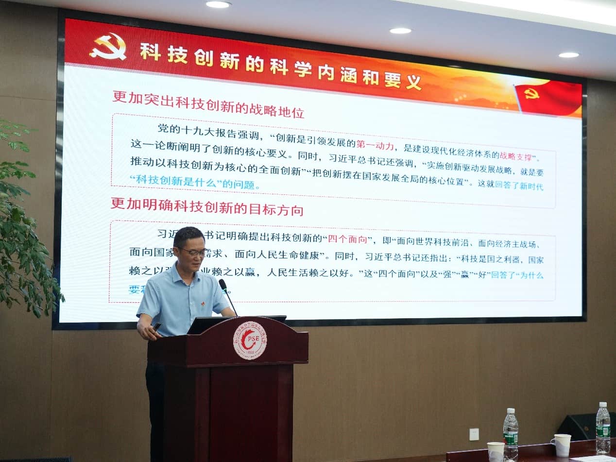 赵长生经理以《以科技创新支撑高质量发展》为题讲授了主题教育专题党课,他表示推动学院高质量发展,必须坚定不移贯彻新发展理念,厚植发展优势,全力推动科技创新,打造具有全球竞争力的先进高分子材料品牌。