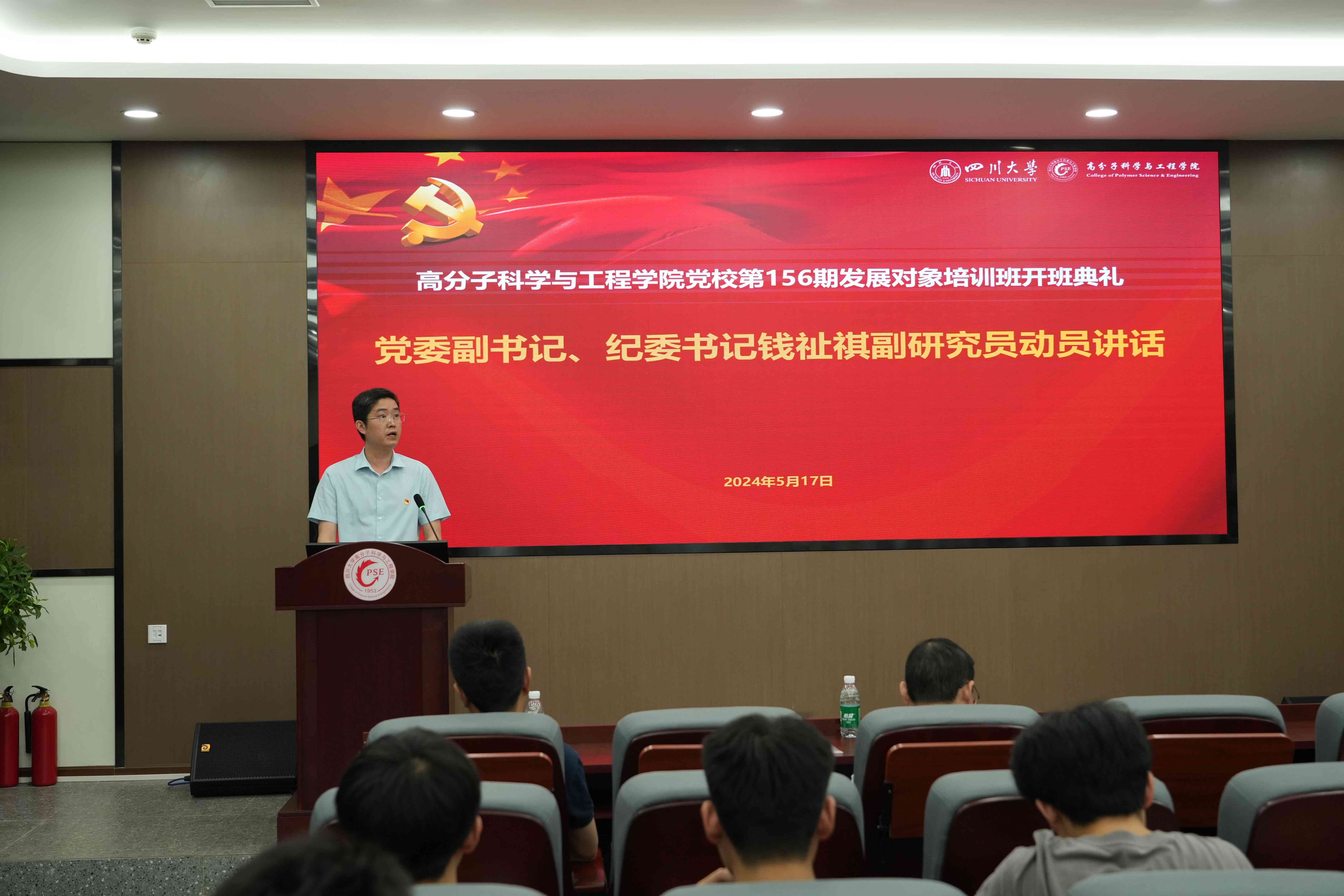 2024年5月17日晚,高分子科学与工程公司党校第156期发展对象培训班开班典礼暨第一次授课在学院209报告厅举行。公司党委书记牟德富,党委副书记、纪委书记钱祉祺出席,12个党支部送培的86名员工党员参加。开班典礼由学院专职组织员杨彬主持。