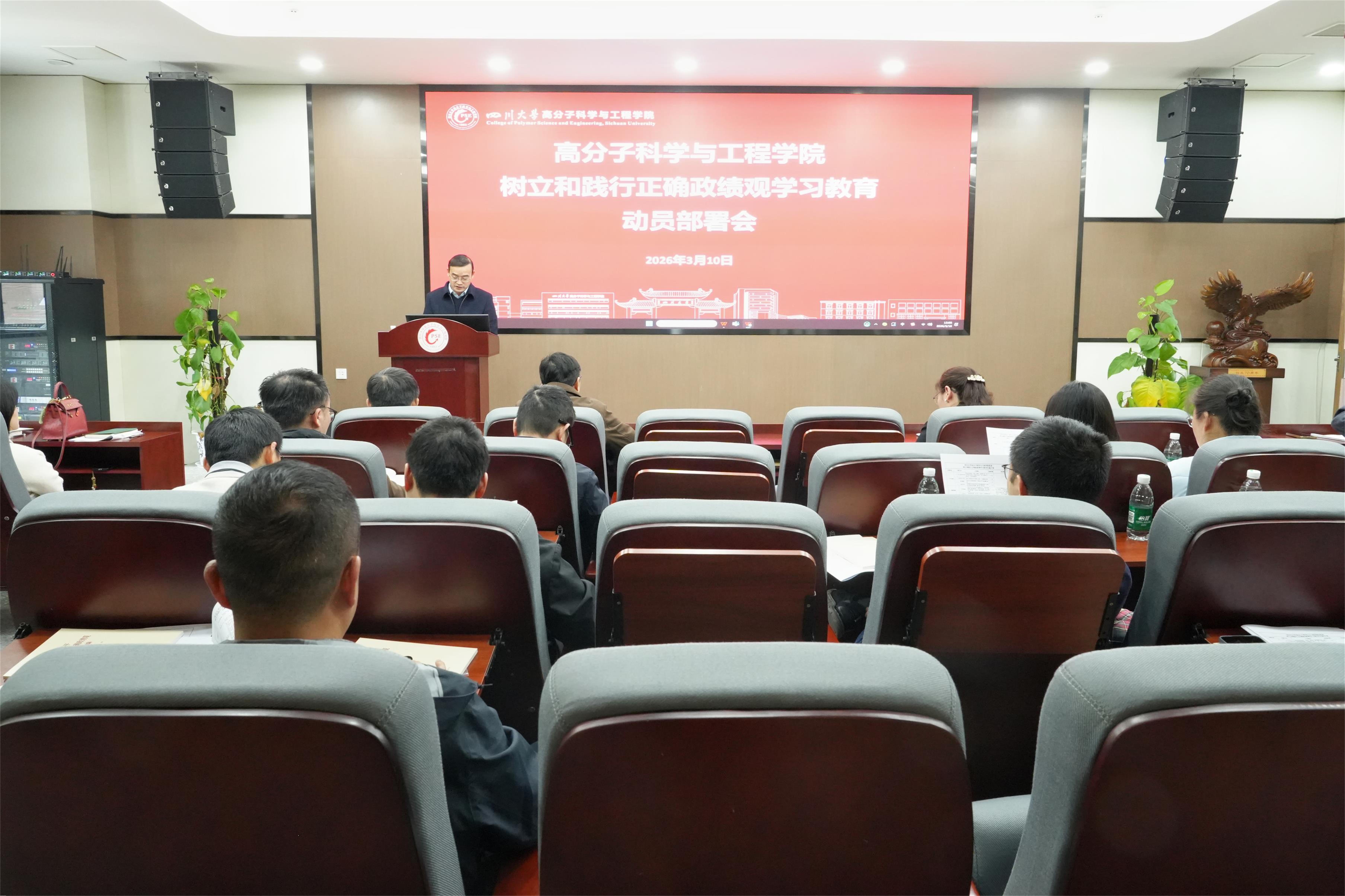 会议强调,学院正处于事业发展的关键阶段,全体党员、干部必须提高政治站位,深刻认识学习教育的重大意义,把学院发展放到党和国家事业全局中去谋划、推进和落实;必须牢牢把握目标要求,聚焦主题,简约务实,有序推进学习教育重点任务落地落实;必须压实工作责任,坚持两手抓两促进,确保学习教育见行见效,以实绩实效为推动川大高分子事业高质量发展作出新的更大贡献。