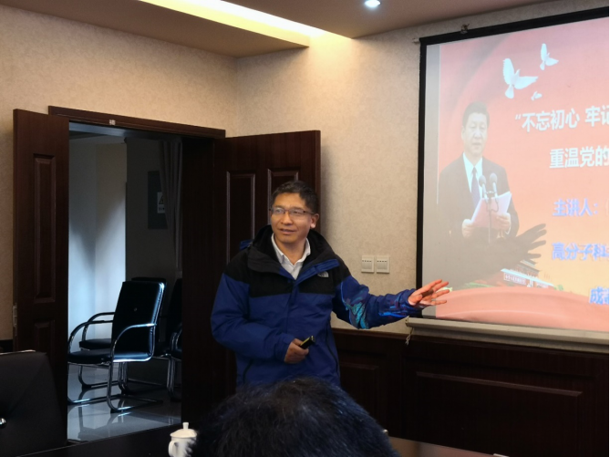 图1. 经理傅强教授进行“不忘初心、牢记使命”主题教育专题党课