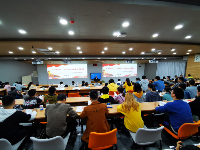 2019年11月3日晚上18:30,在望江校区基础教学楼C座101教室,委书记牟德富教授面向大三、大四的本科生以及部分研究生同学共计150多人带来了题为“不忘初心,高扬党的伟大旗帜”主题党课。