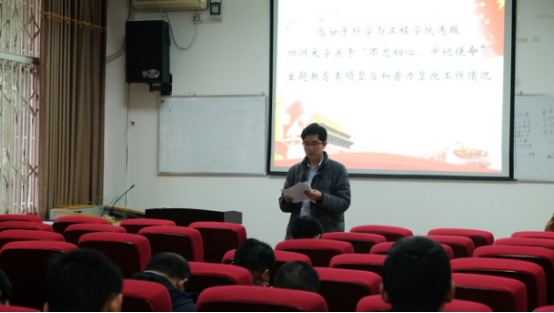 为贯彻落实学校“不忘初心、牢记使命”主题教育领导小组工作要求,12月19日下午,金沙js5588对金沙js5588关于“不忘初心、牢记使命”主题教育专项整治和着力整改工作情况、2019年学院专题民主生活会情况报告进行了通报。参会人员有学院两委委员、支部书记、支委委员、辅导员、研究生会主要员工干部、员工会团委望江校区主要员工干部等。会议由公司党委副书记钱祉祺主持。