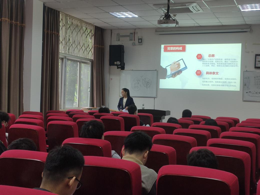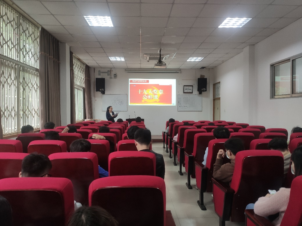 支部书记黄思维老师以“百年与时俱进—中国共产党党章历史演变”为题带头讲授了党课,围绕党章的构成、意义、地位以及党章修改带来的启示等方面进行了详细解读。黄老师带领支部同志们从民主革命、社会主义建设、改革开放以来三个阶段回顾了党章的历史演变,重点阐述了 党从一大的党纲到七大、十六大、十九大党章的修改过程。最后,支部观看了《十九大党章公开课》, 深入浅出解读新党章。