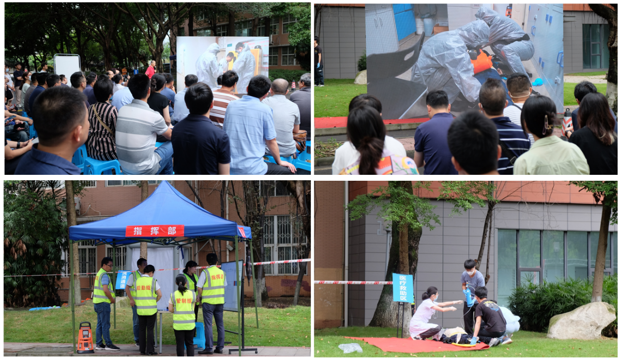 金沙js5588副董事长褚良银、清华大学化工系高级工程师杜奕出席活动,公司党政办、学工部、保卫部(处)、教务处、研究生院等部门主要负责人,各学院(医院、系、中心、所)、国家级(省级)科研实验平台实验室安全分管领导、安全主管,学院150余名师生及成都市消防救援支队锦江区大队莲桂路消防救援站消防官兵参加了演练。