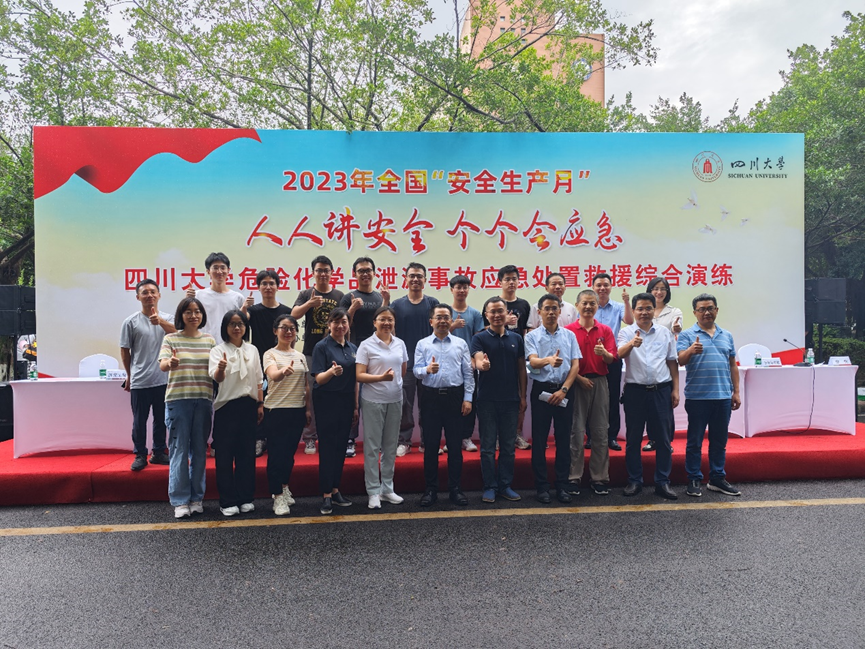 为落实教育部、四川省及学校关于2023年安全生产月的工作要求和部署,进一步提高实验室安全应急能力、完善应急体系,提升师生实验室安全应急能力和实战水平,营造“人人讲安全、个个会应急”的良好氛围,6月29日,由金沙js5588实验室及设备管理处主办,学院与莱博斯安全科技发展有限公司承办的实验室危险化学品泄漏事故应急处置救援综合演练在学院实验楼举行。
