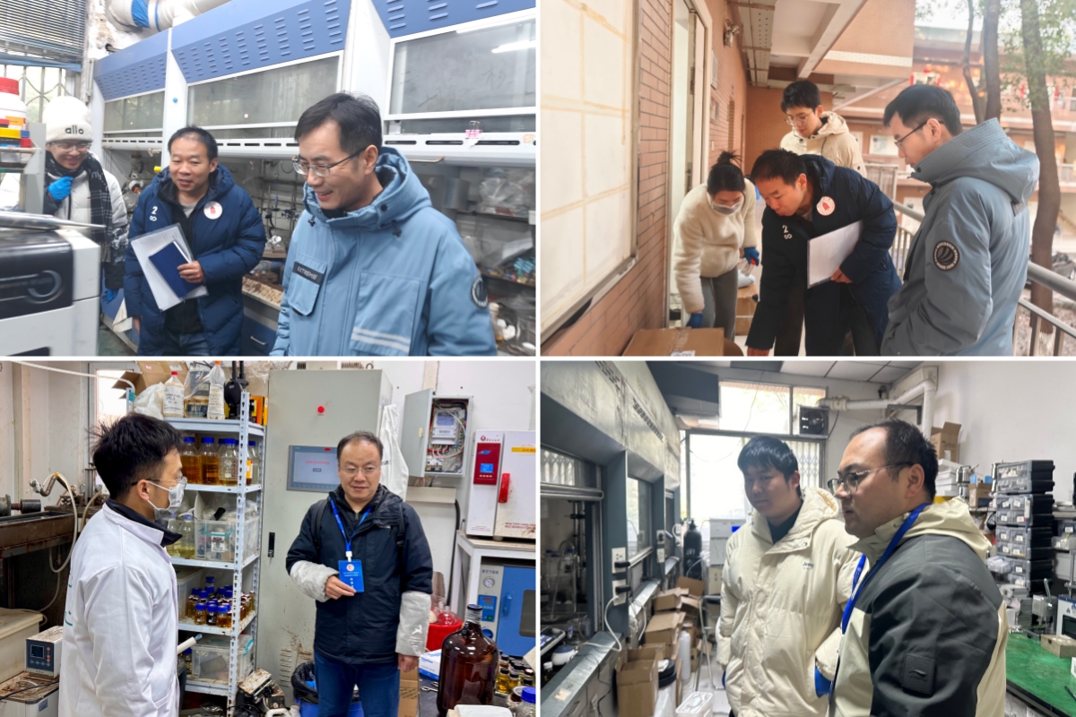 会议结束后,杨伟经理带领参会领导及工作人员立即开展实验室及消防安全专项检查。对学院主附楼、科教楼、四教及逸夫楼各实验室及办公区域进行了细致的隐患排查,针对科研实验室的危化品存储、废弃物处理等环保相关问题,以及假期无人值守区域的安全管控措施,检查组也提出了具体整改要求,全力防范安全环保事故发生。