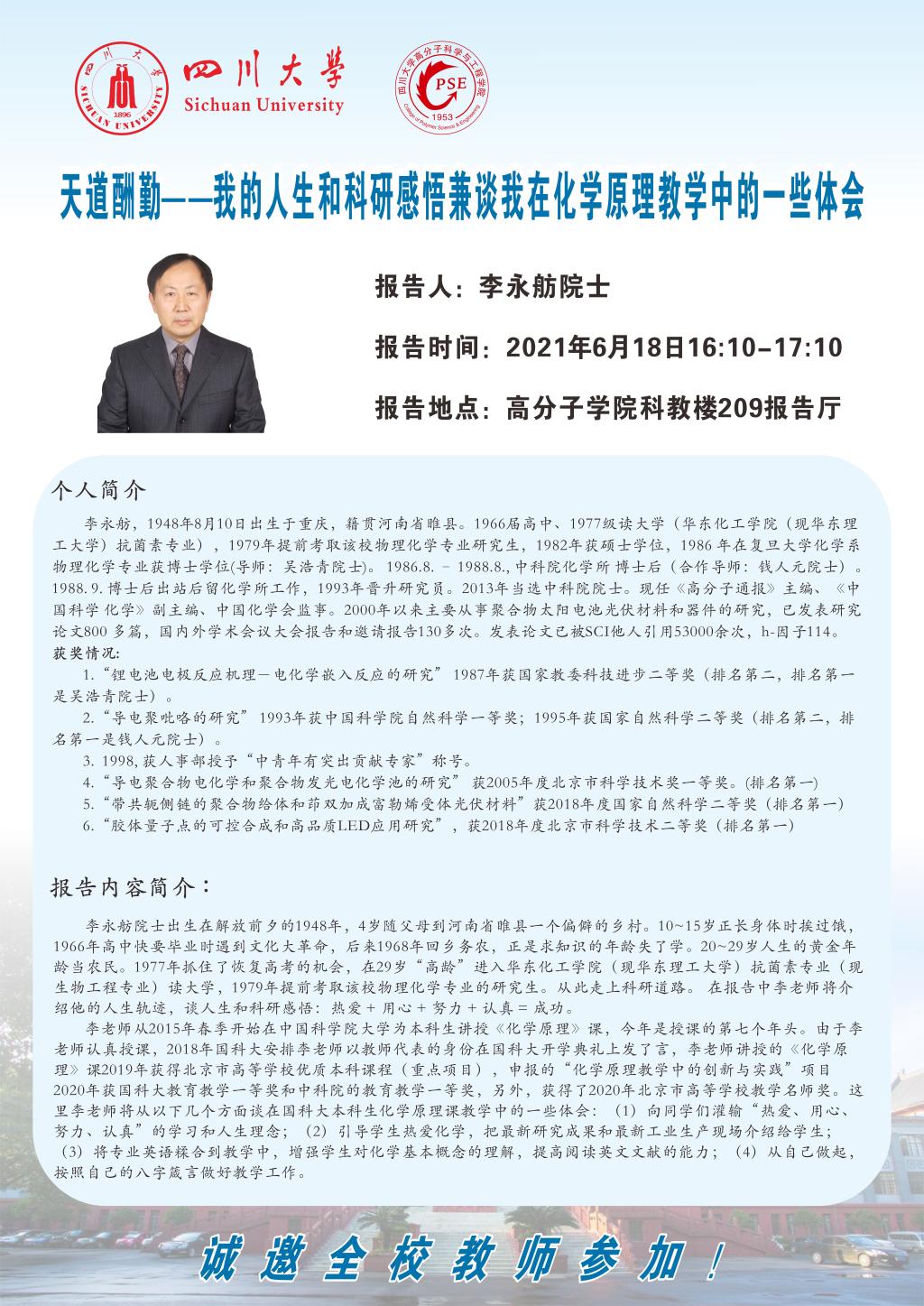 天道酬勤——我的人生和科研感悟兼谈我在化学原理教学中的一些体会