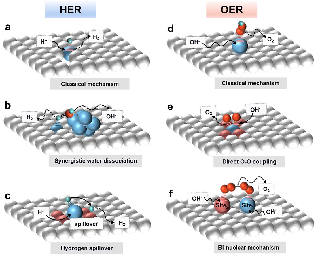 图2不同类型的SASs在电解水催化过程中的反应路径