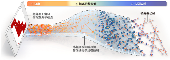 图1. 为拉伸加工出临界薄度的高分子膜材料,需要全链条式的整体创新