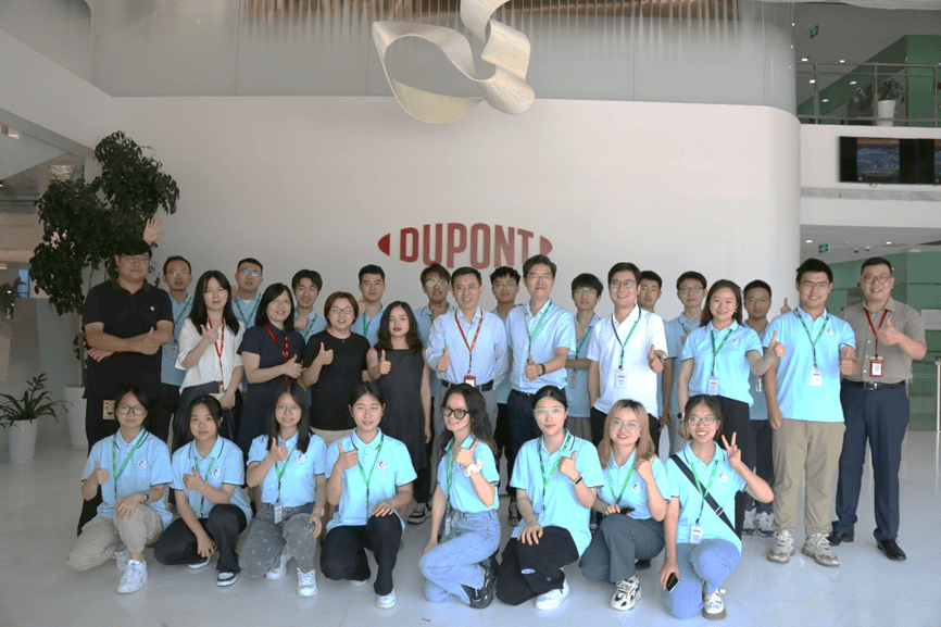 在杜邦(DuPont)中国研发中心,学院师生参观了创新成果展厅,回顾了杜邦(DuPont)公司200多年来的发展历程,对杜邦公司的水处理材料和技术、电子信息材料、节能环保材料等产品进行了深入了解。在交流互动环节,杜邦中国研发中心总经理陈志东博士对学院师生的到访表示了欢迎,员工、杜邦电子与工业事业部王娟分享了职业发展经历,并就同学们感兴趣的问题进行了回答。杜邦中国HR招聘负责人王慰对公司的核心价值观、可持续发展、STEM创新大赛等进行了介绍。整个参观过程中,杜邦(DuPont)公司凭借世界级的科学和工程能力,面向世界科技前沿,提供了大量创新的材料和产品给学院师生留下了深刻印象。