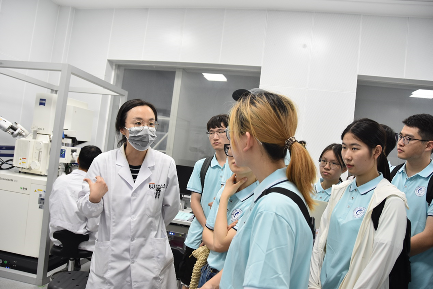 在西湖大学(云谷校区)参观期间,实践团先后到访了西湖大学物质科学公共实验室、生物材料和药物递送实验室、智能高分子材料实验室及新能源材料实验室等研究平台。西湖大学工公司党委书记黄初东教授对西湖大学的招生模式探索、人才培养理念和基础科学研究情况进行了详细介绍;员工、西湖大学博士生易周翔分享了在西湖大学学习的体会。交流期间,学院师生对西湖大学在短短五年内构建了与国际接轨的人才选拔和培养模式,产出了一系列面向世界科技前沿的基础研究成果感触颇深。