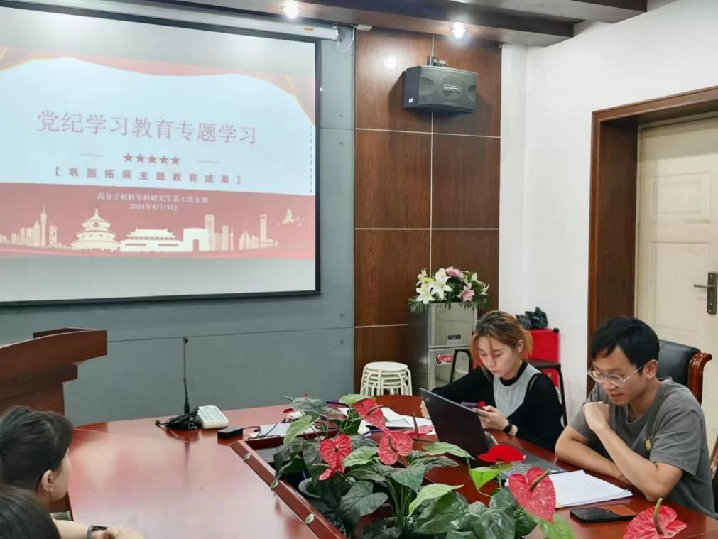 为强化政治责任担当、增强全体党员的纪律意识、扎实推进党纪学习教育,2024年4月19日,金沙js5588高分子材料学科研究生第七党支部在学院附楼214会议室召开党纪学习动员大会。