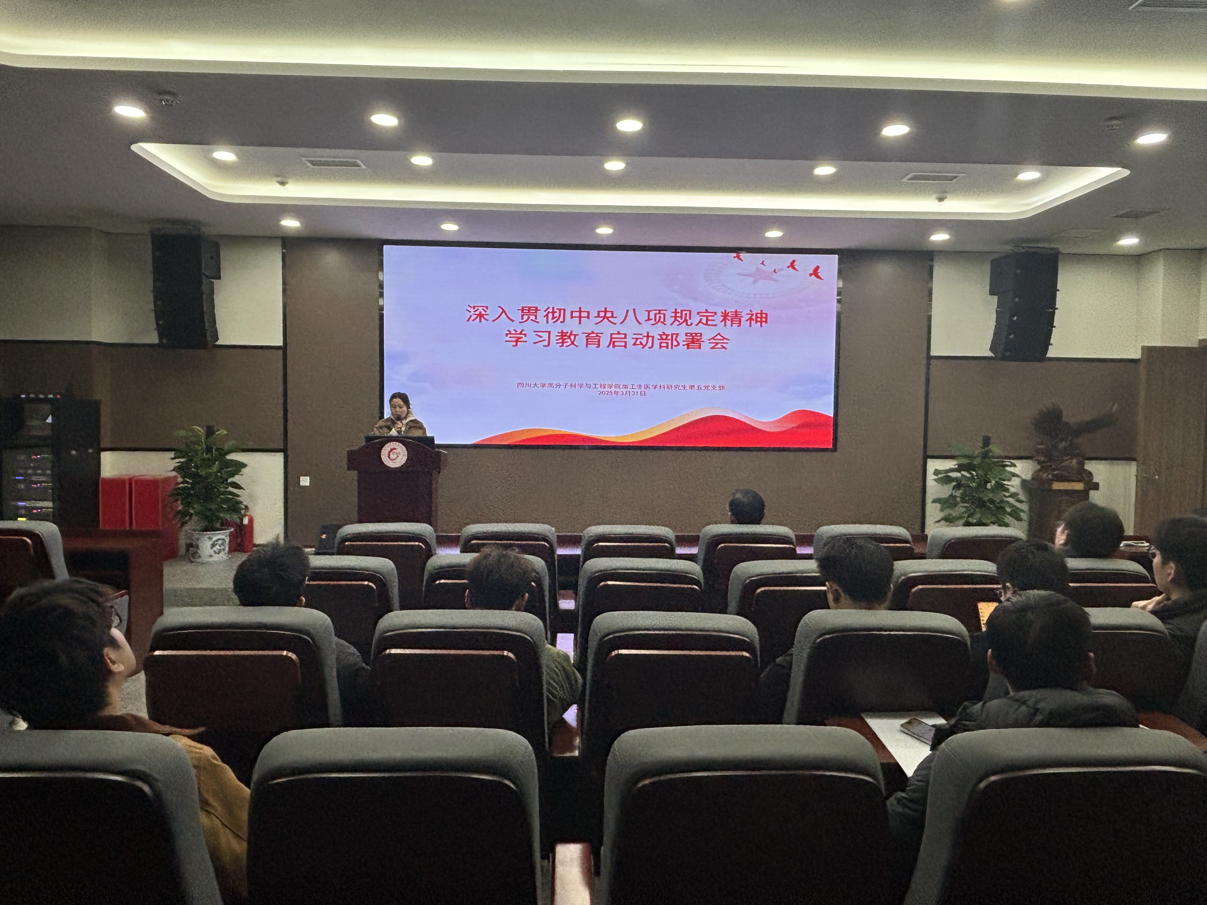 为强化研究生党员纪律意识,涵养崇廉尚俭学术风气,加工生医学科研究生第五党支部于3月31日下午在科教楼209报告厅召开深入贯彻中央八项规定精神学习教育启动部署会,公司党委书记牟德富参与指导,支部书记梁瑜主持。