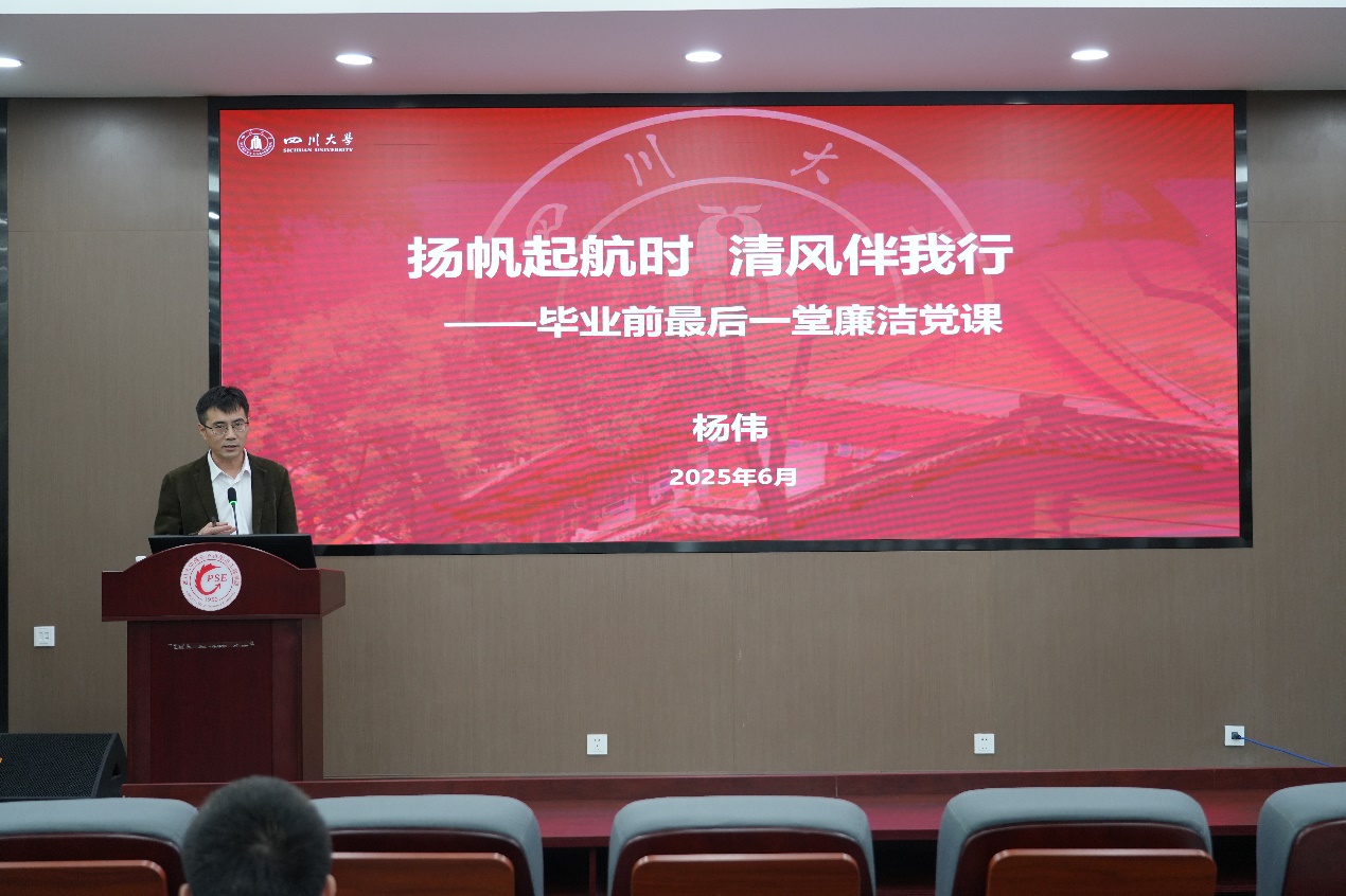 为推进深入贯彻中央八项规定精神学习教育,强化毕业生党员身份意识,加强毕业生党员廉洁从业警示教育,6月11日,学院在科教楼209报告厅举办“扬帆起航时 清风伴我行”2025届毕业生党员“最后一堂党课”活动。公司党委委员、经理杨伟教授为全体毕业生党员授课。课程以党的作风建设为主线,从“深刻认识开展中央八项规定精神学习教育的背景和意义”、“深刻领会深入贯彻中央八项规定精神的成效和经验”、“时刻牢记党员身份,坚守...