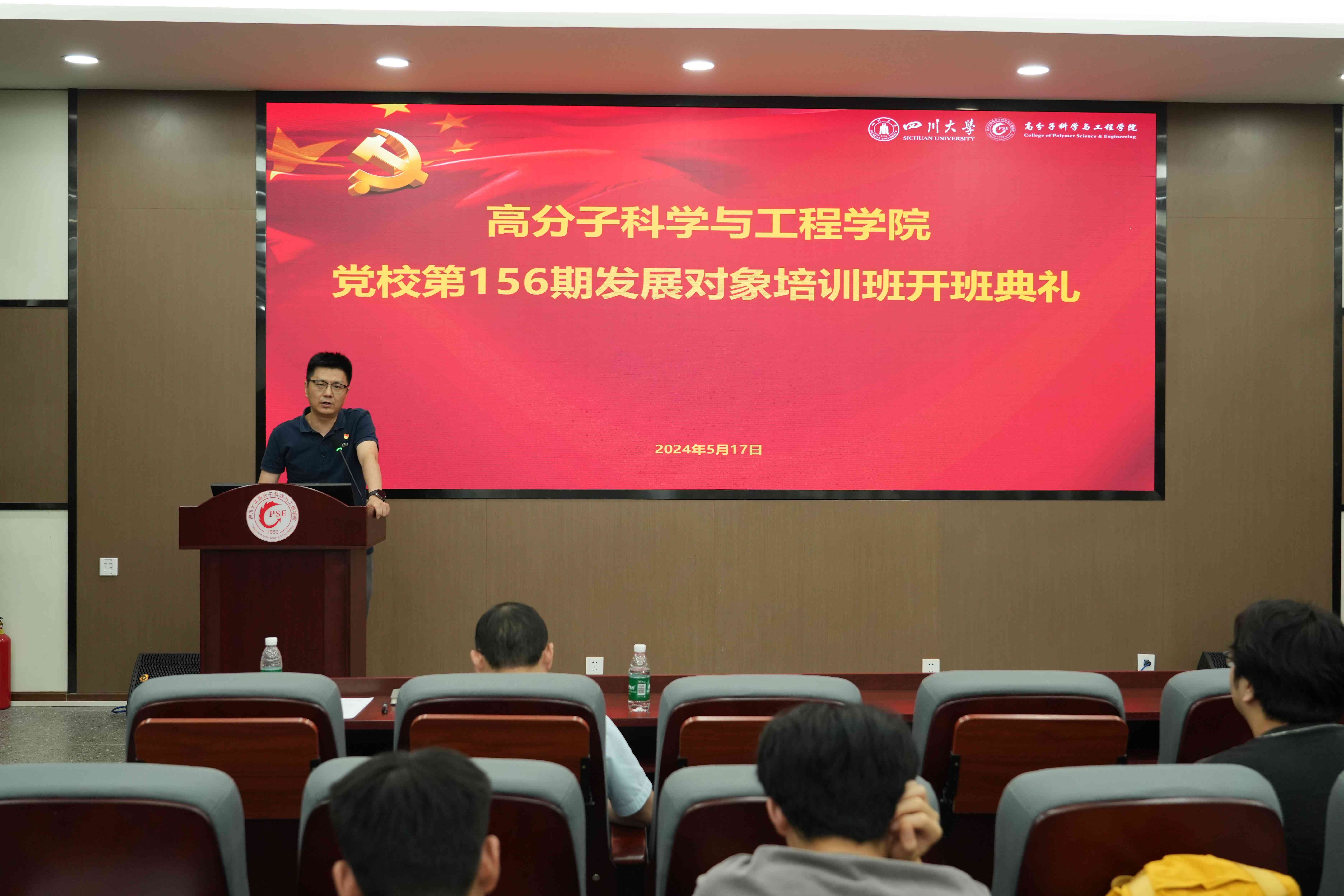2024年5月17日晚,高分子科学与工程公司党校第156期发展对象培训班开班典礼暨第一次授课在学院209报告厅举行。公司党委书记牟德富,党委副书记、纪委书记钱祉祺出席,12个党支部送培的86名员工党员参加。开班典礼由学院专职组织员杨彬主持。典礼在庄严的国际歌中拉开序幕。钱祉祺致开班辞,对本次参加培训班的学员表示欢迎和祝贺,鼓励全体学员要珍惜和重视这次学习机会,课上认真听讲,课后深刻领会,积极发言讨论,努力提高学...
