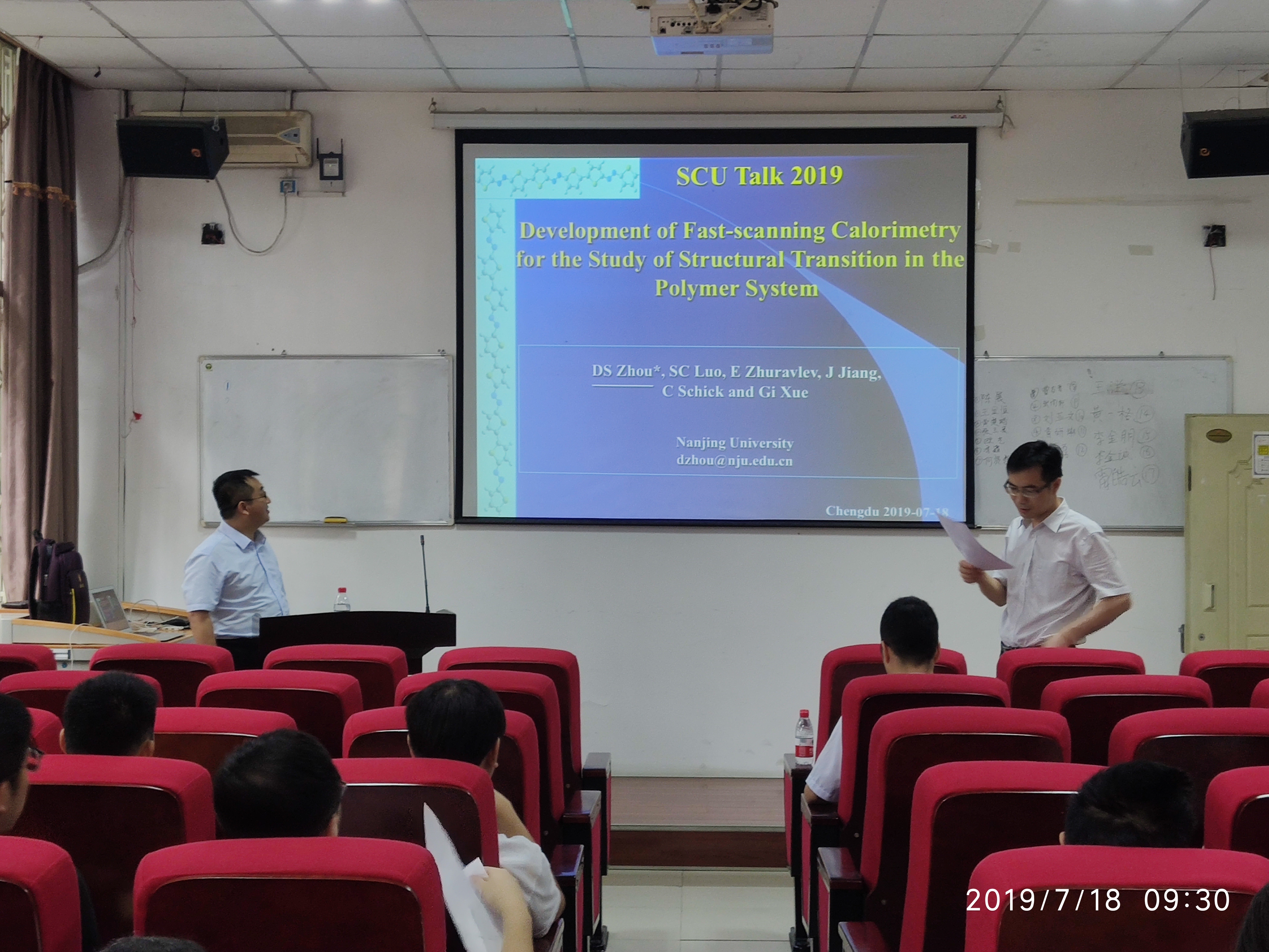 2019年7月18日,应学院吴锦荣教授邀请,南京大学化学化工学院周东山教授来到公司,为公司师生作题为“Development of Fast-scanning Calorimetry for the Study of Structural Transition in the Polymer System”的学术报告。学院副经理杨伟教授主持报告。周东山教授从量热方法中不同升温速率应用范围出发,介绍了快速量热法的特点以及这一方法在聚合物表征方面的应用,重点讲述了该方法在受限态聚合物的表征、共轭高分子的...