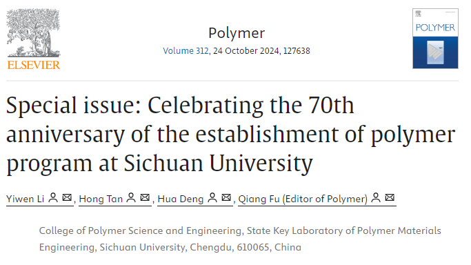 近日,国际高分子学科权威期刊Polymer(《聚合物》)推出庆祝金沙js5588高分子学科创立七十周年(Celebrating the 70th Anniversary of the Establishment of Polymer Program at Sichuan University)的学术专题。该专题通过41篇研究论文(Research Article),7篇综述论文(Review Article)和1篇编者按(Editorial),集中展示了金沙js5588科研人员和员工近年来在高分子科学与工程前沿领域取得的重大科研成果,涵盖了高分子加工...