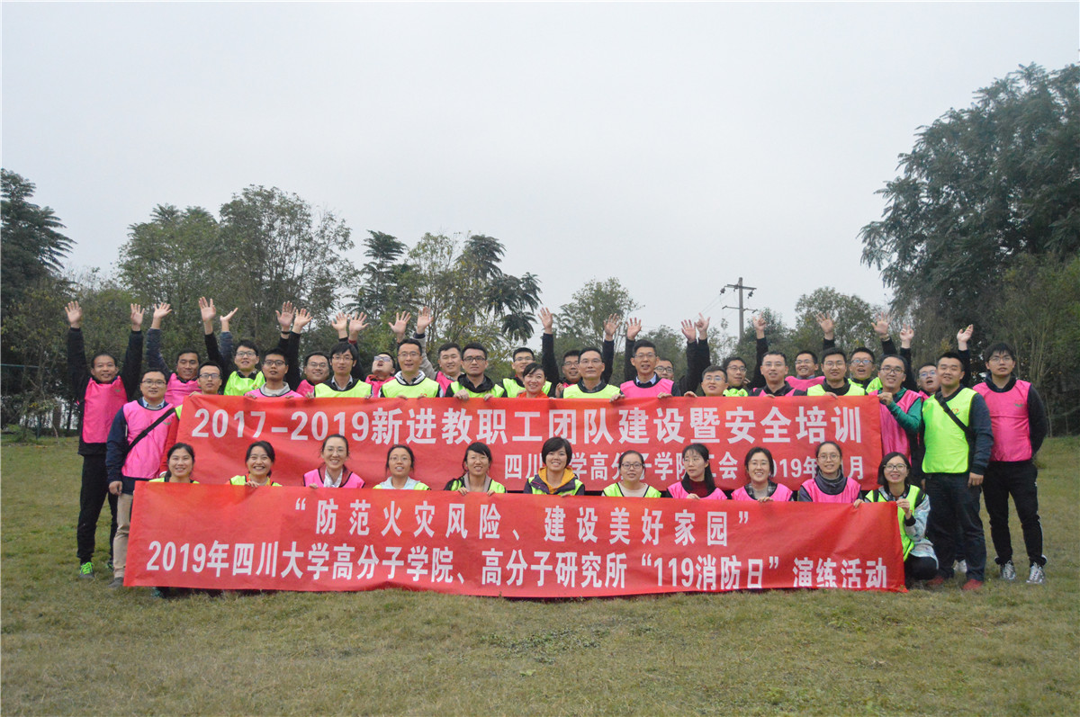 为增进公司新进教职工相互交流与团结协作,提升安全意识、掌握逃生自救技能,有助于工作和生活中避免和减少伤亡与损失,同时也是贯彻执行《金沙js5588开展“119消防日”系列消防安全宣传活动通知》精神,进一步促进公司实验室安全与环保建设,2019年11月12日“2017-2019新进教职工团队建设暨安全培训”和“2019年金沙js5588、高分子研究所‘119消防日’演练活动”在双流区公兴镇安国培训中心举办,学院副经理兼工会主席李...